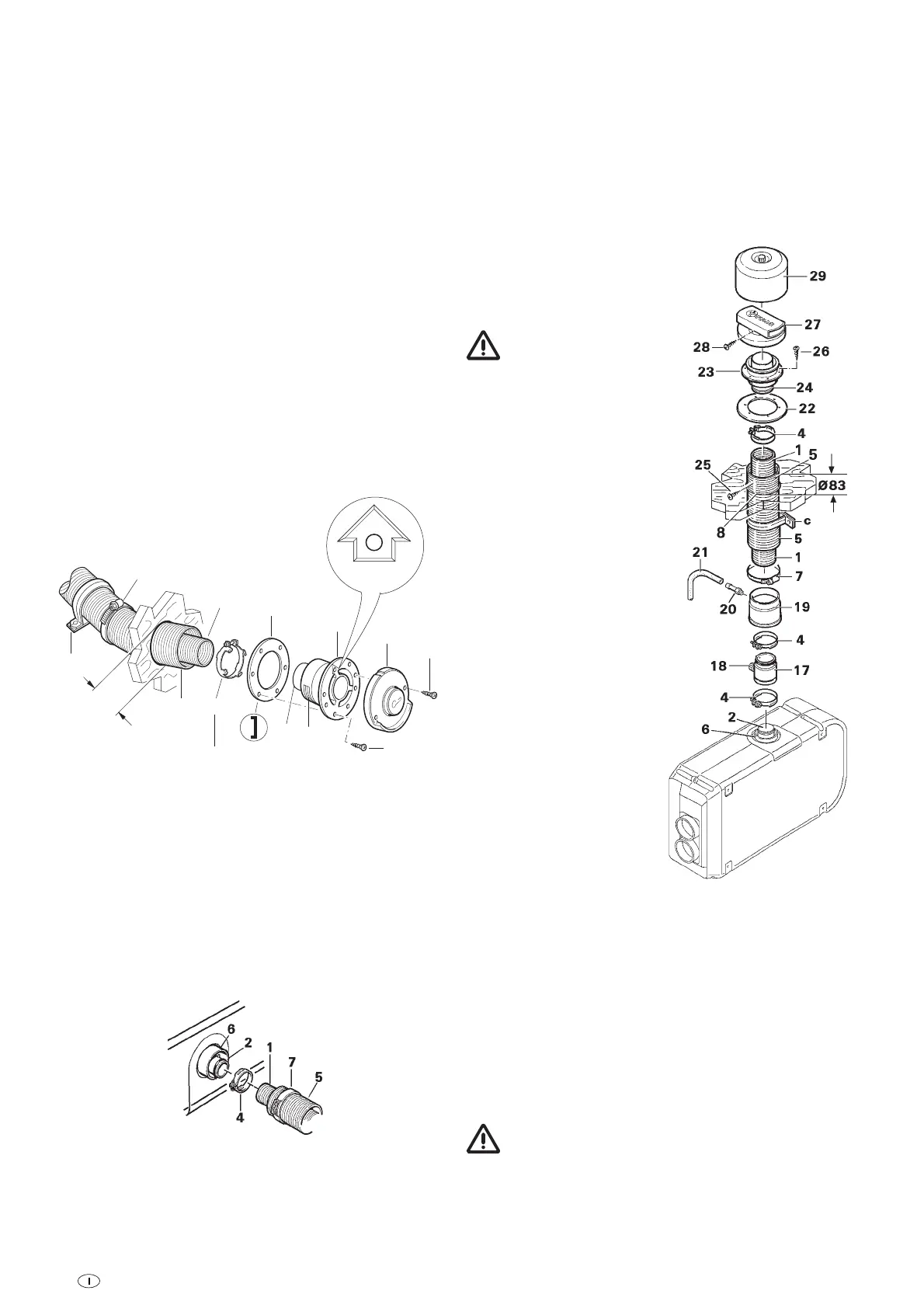 vite. Fissare il tubo di apporto aria di combustione (5) sul boc-