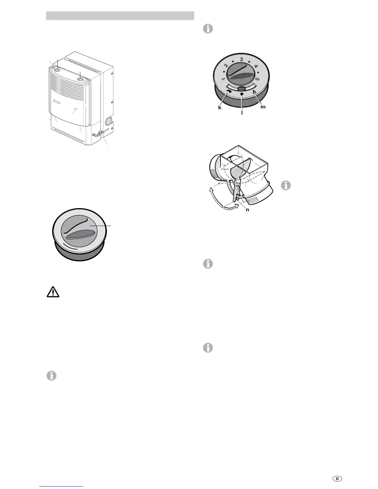 Gebläsebetrieb mit einer Thermostateinstellung von 3 – 5. Wir