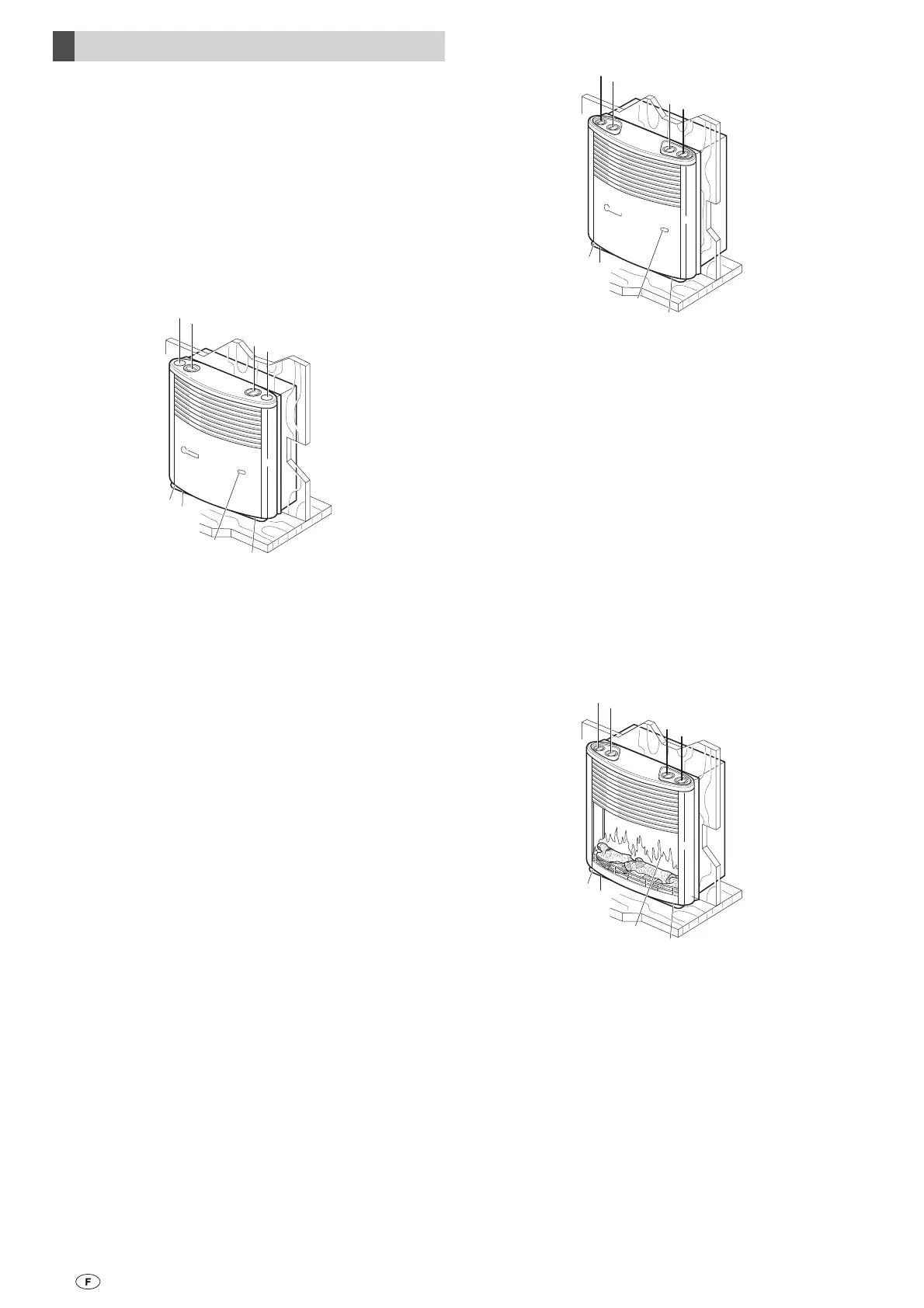 e = pièce de commande « feu de cheminée »