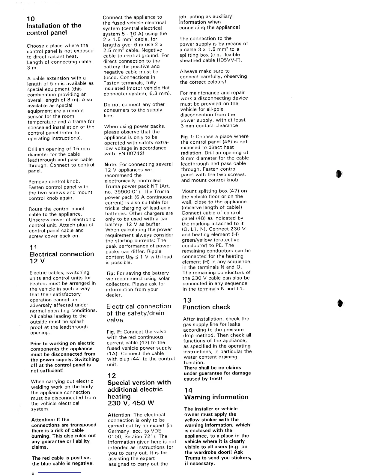 Trumatic C 3400 - Installation of the Control Panel; Electrical Connection 12 V; Version with Additional Electric Heating 230 V, 450 W; Functional Check