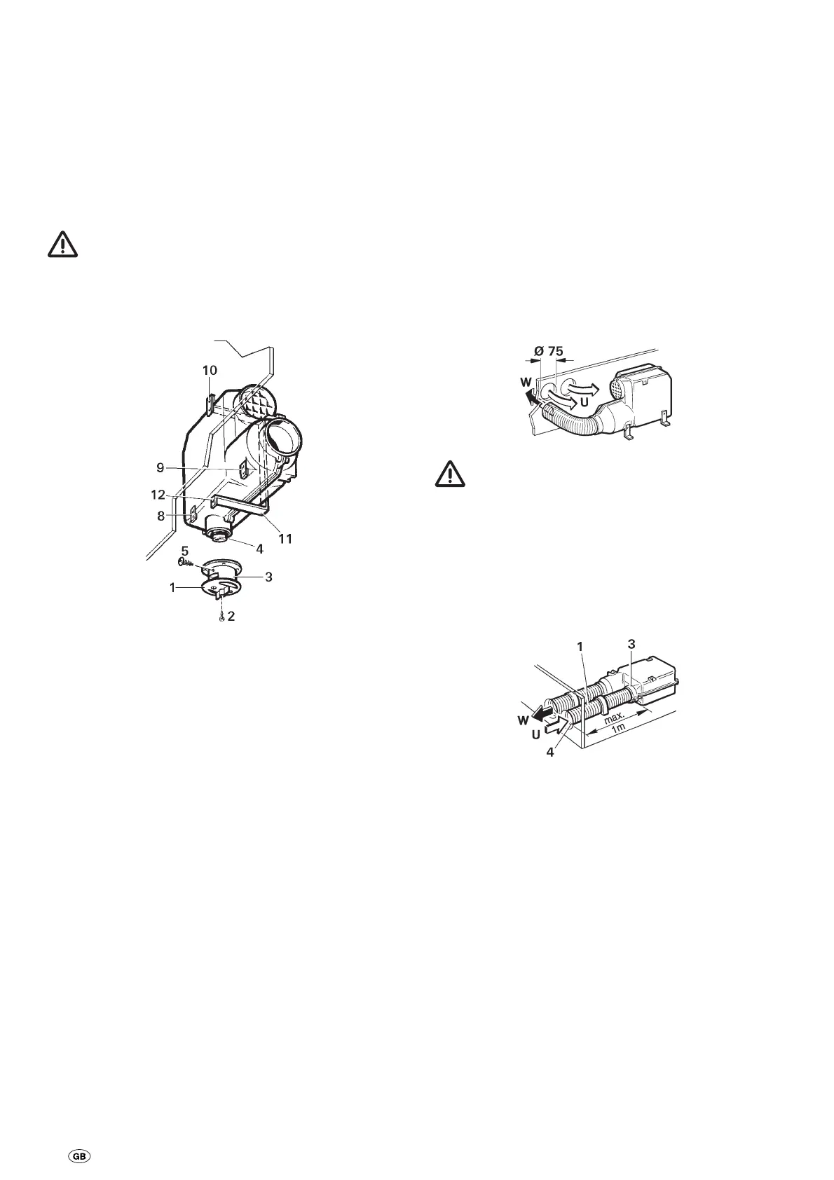 directly or using a warm air duct VR 80 (80 mm diameter).