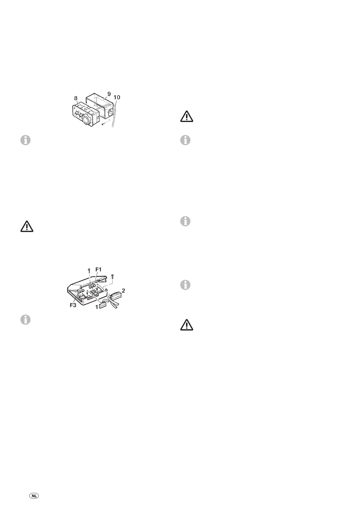 tevoren de voedingsspanning werd afgeklemd. Stekker recht