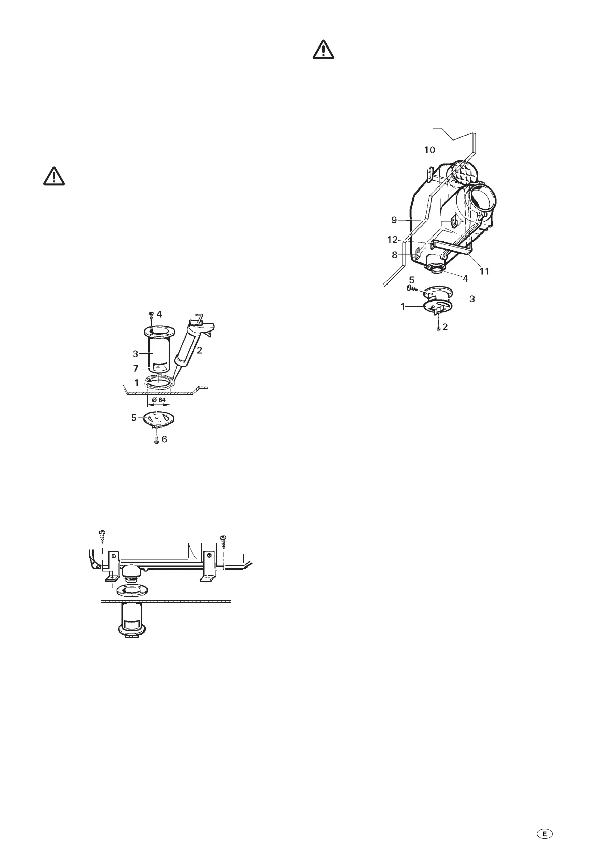plantilla. Taladre el orificio (1) de Ø 64 mm para la chimenea
