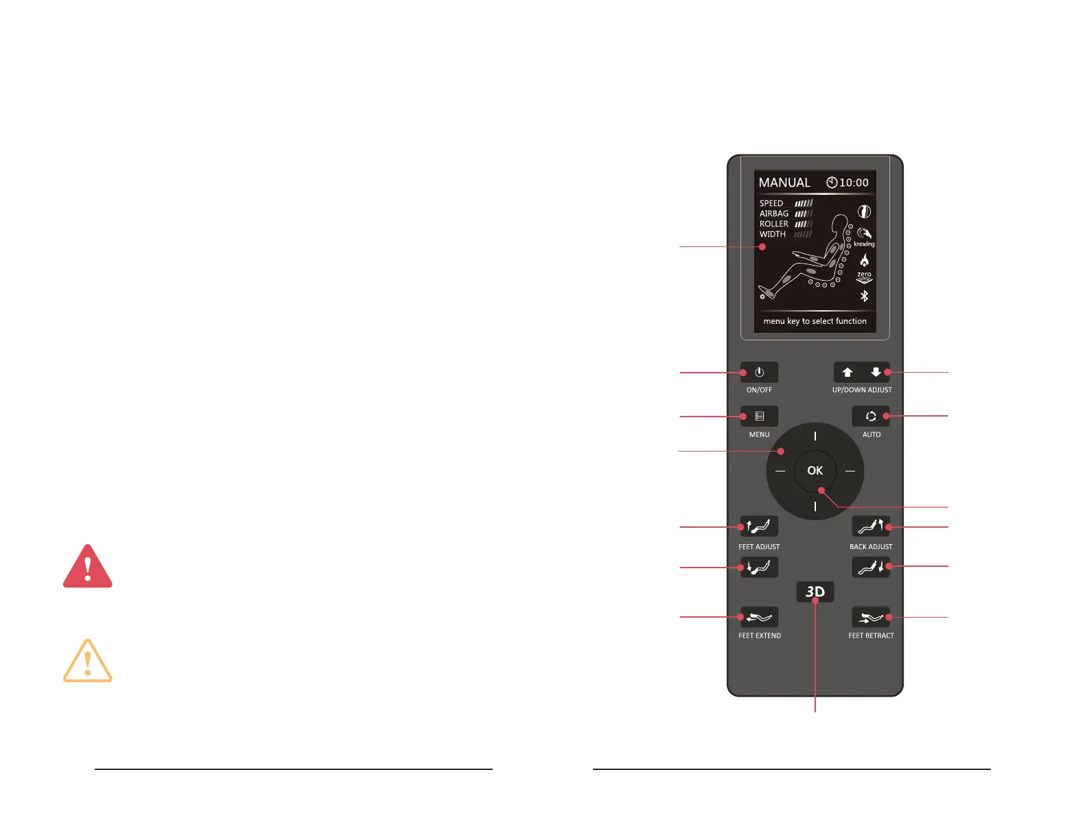 The remote control that comes with your Etude™ massage chair features a user-friendly