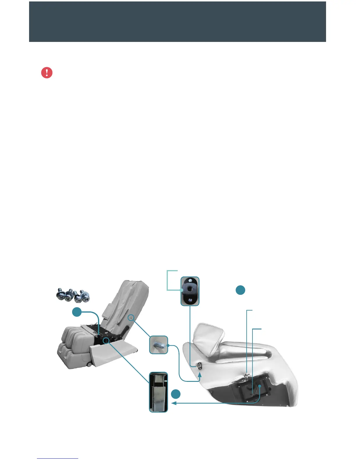 Before you install the armrests, locate the remote control in the middle of the leg rest.