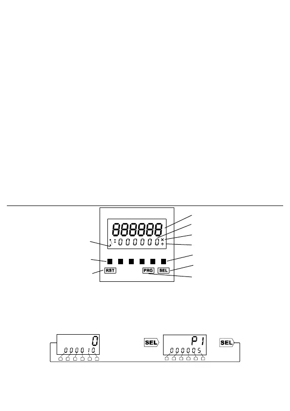 The front panel buttons are used to program the counter and to display and set the P1