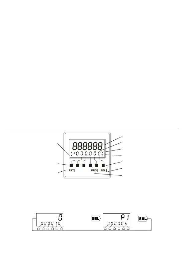 Los botones del panel frontal son usados para programar el contador y para visualizar y