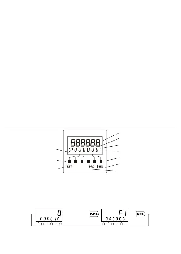 I pulsanti del pannello frontale sono utilizzati per programmare il contatore e per