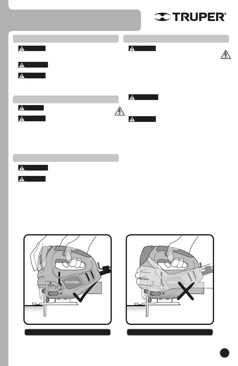 • When operating the jig saw always assure it is firmly