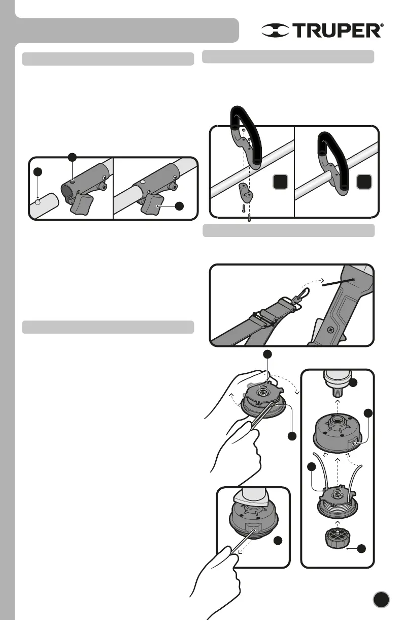 • Recorra el mango auxiliar por el eje de la desbrozadora