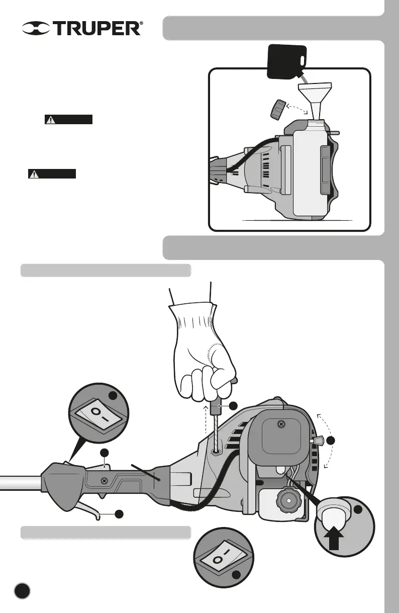 • Pull the starter/handle (D) quickly to start the