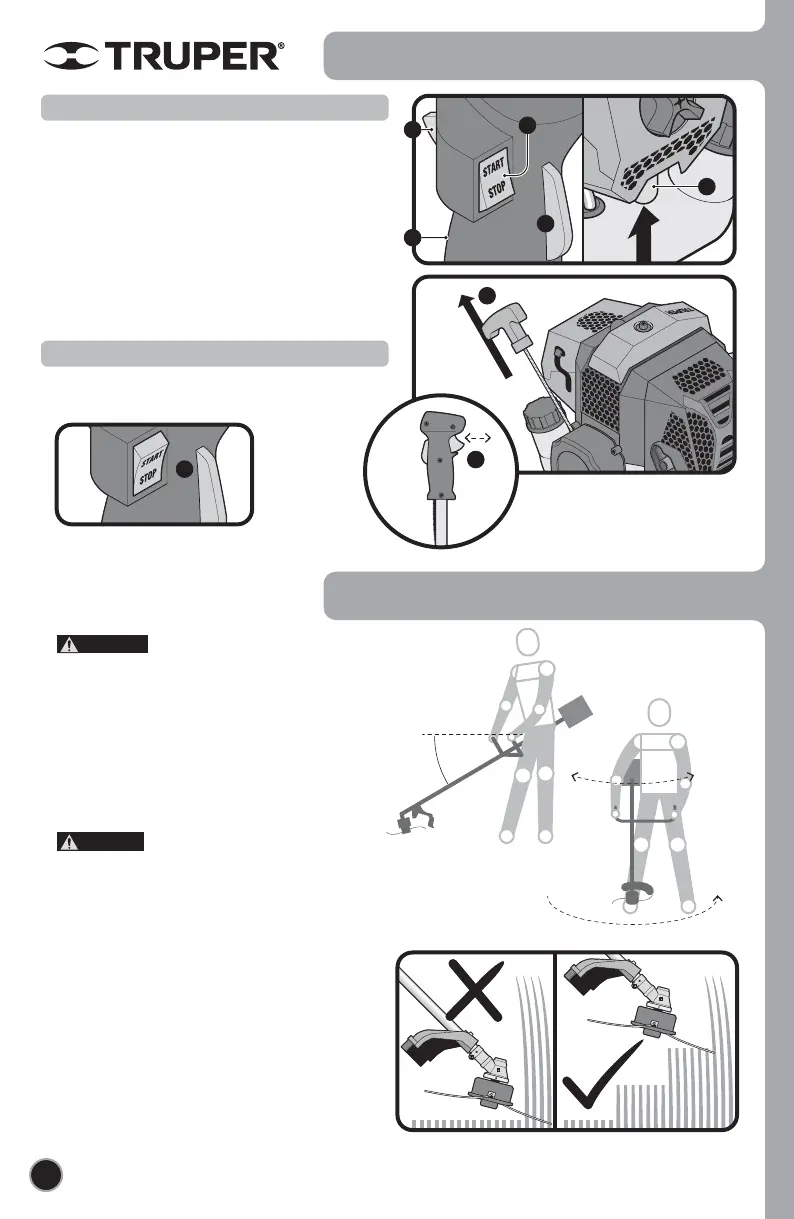 • To cut brush or grass, cut gradually. Do not try to cut in