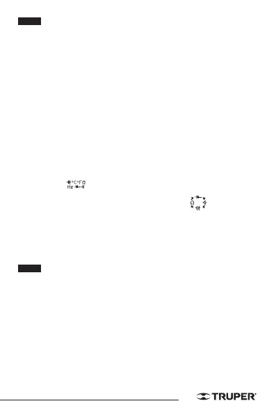 • Para mediciones de resistencia >1 MΩ, le toma al multímetro unos
