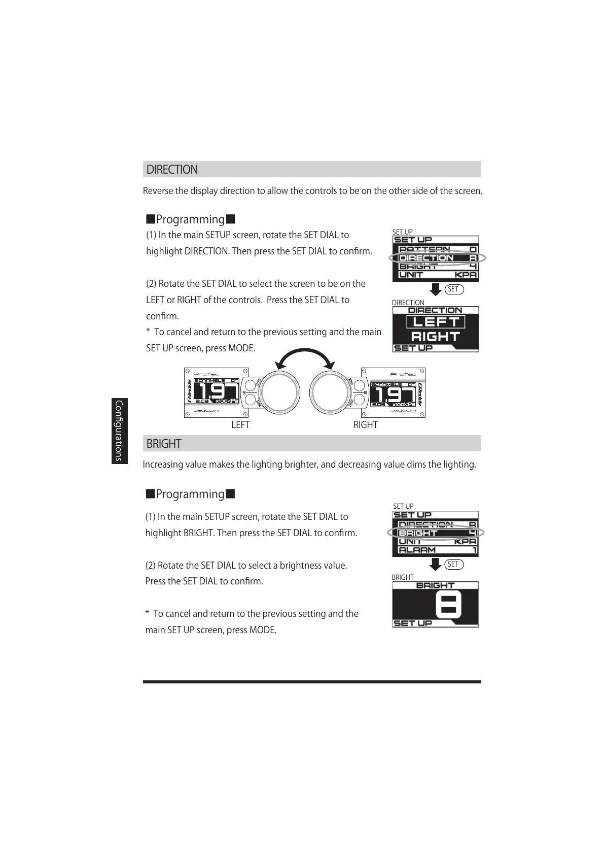 highlightBRIGHT.ThenpresstheSETDIALtoconfirm.