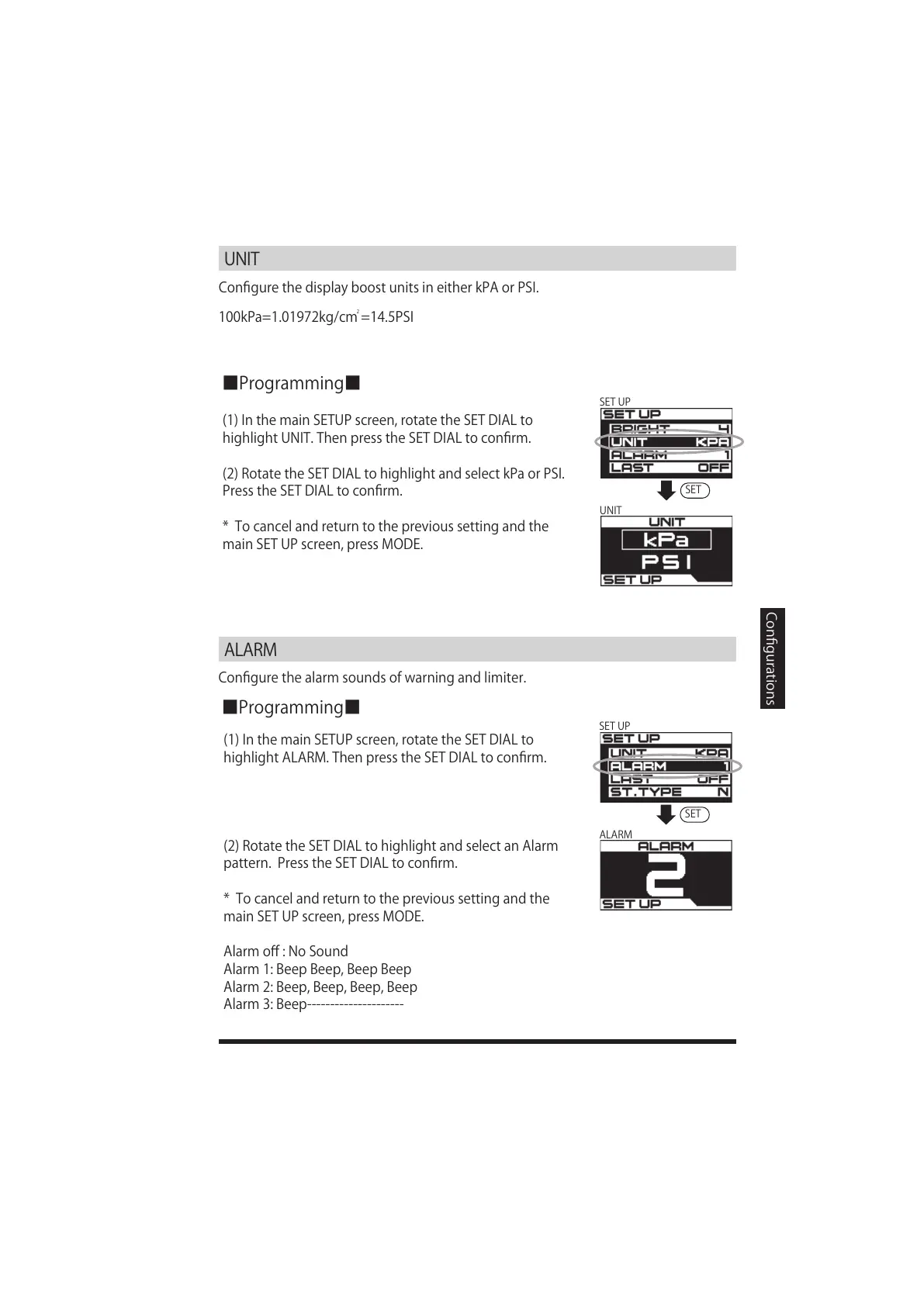 (2)RotatetheSETDIALtohighlightandselectkPaorPSI.