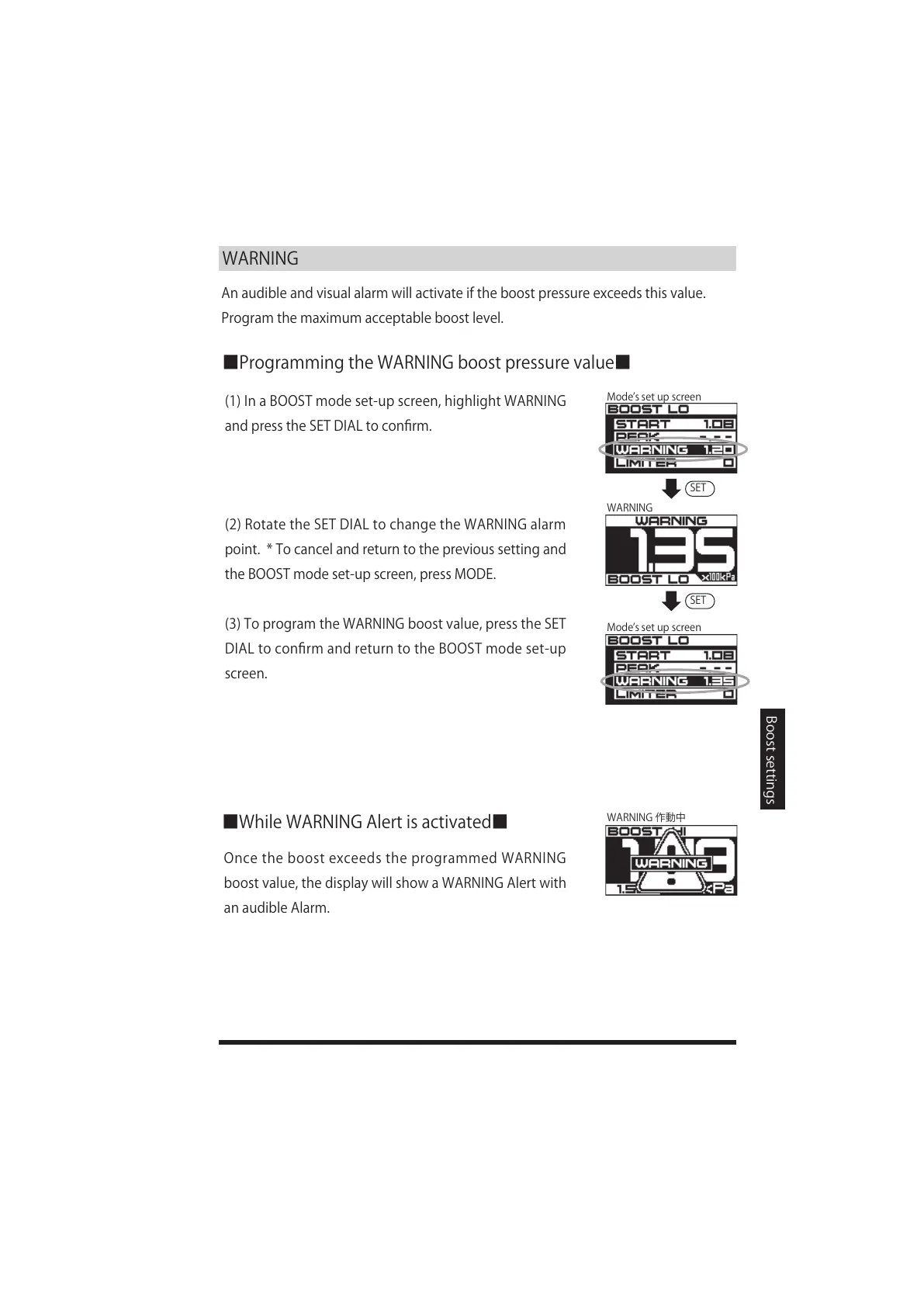 boostvalue,thedisplaywillshowaWARNINGAlertwith