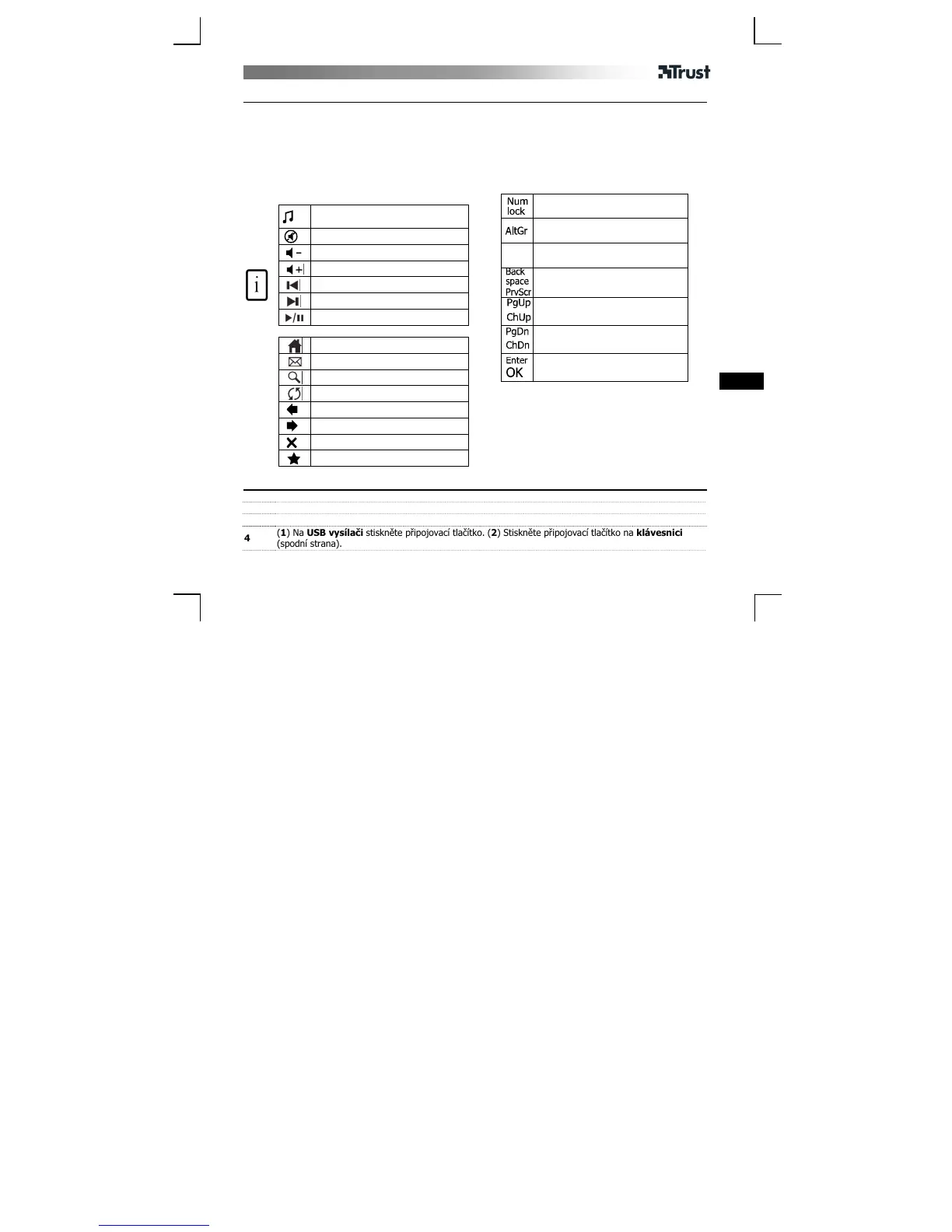 (1) Na USB vysílači stiskněte připojovací tlačítko. (2) Stiskněte připojovací tlačítko na klávesnici