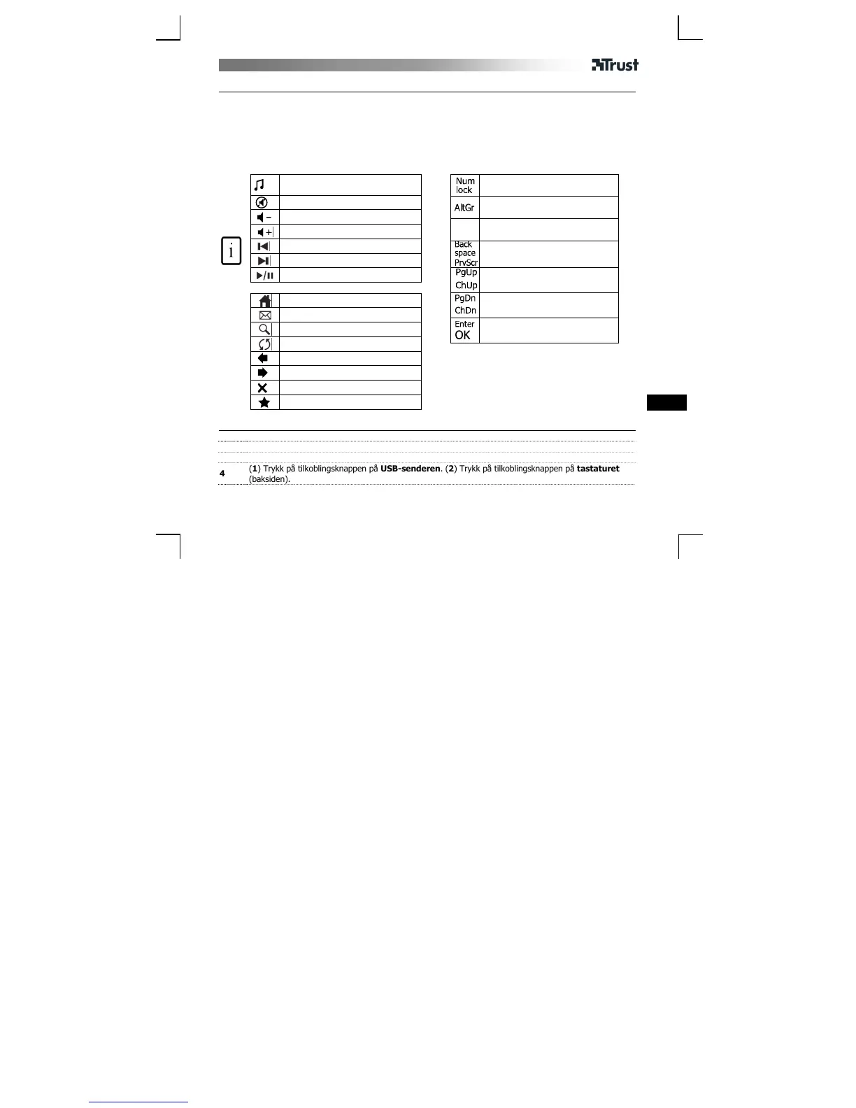 (1) Trykk på tilkoblingsknappen på USB-senderen. (2) Trykk på tilkoblingsknappen på tastaturet
