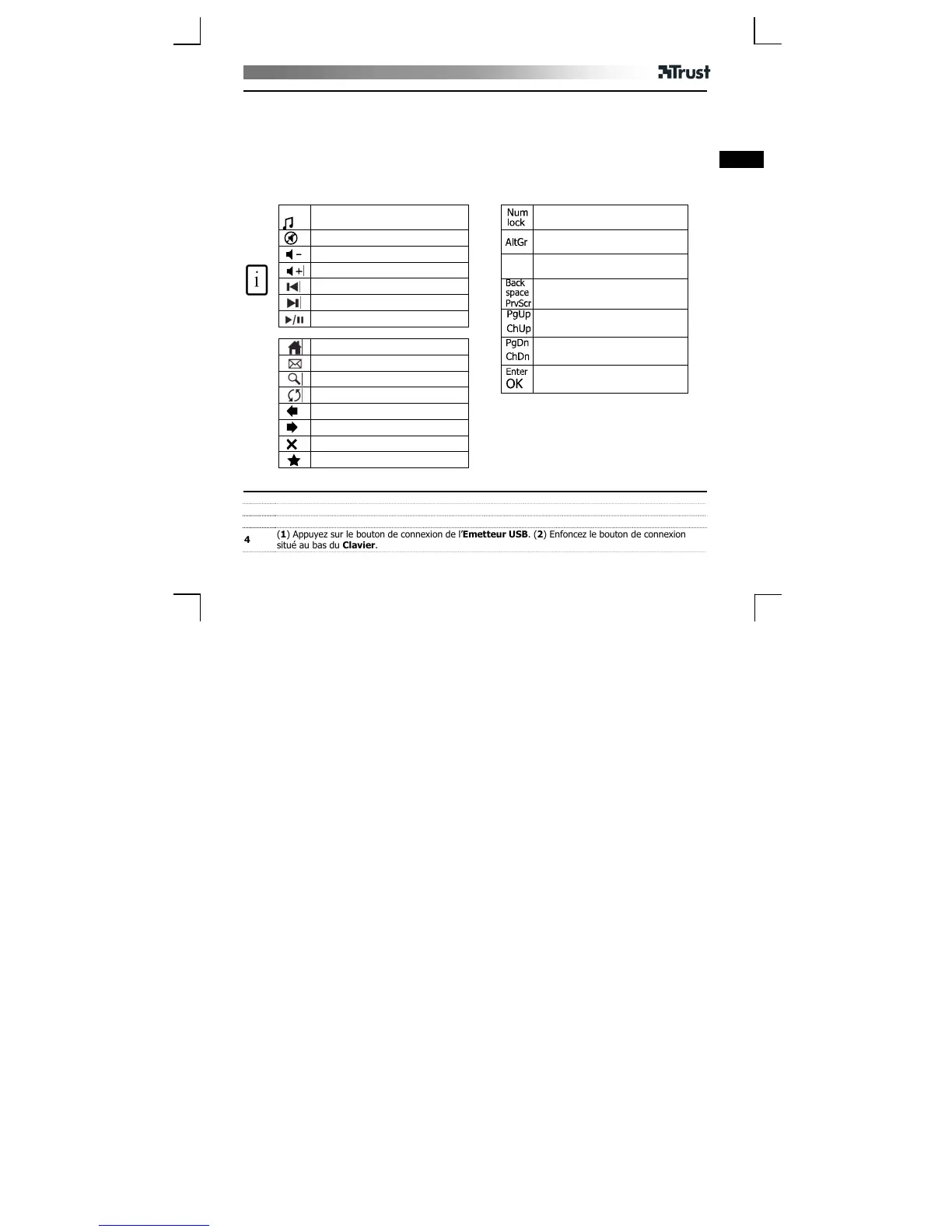 (1) Appuyez sur le bouton de connexion de l’Emetteur USB. (2) Enfoncez le bouton de connexion