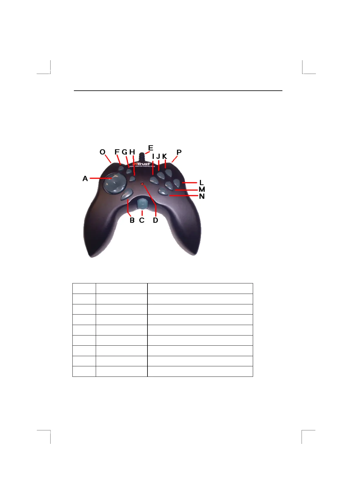 The game pad has the buttons shown in figure 16. Not all of the functions are used for