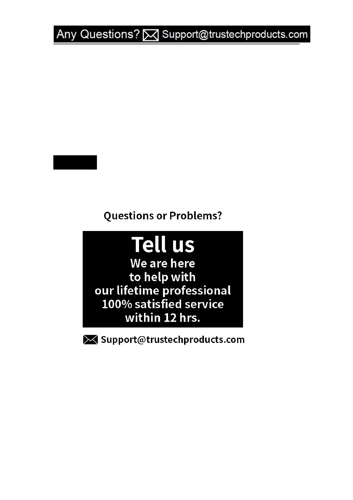 Support@trustechproducts.com. Our usual response time is within 12 hours!
