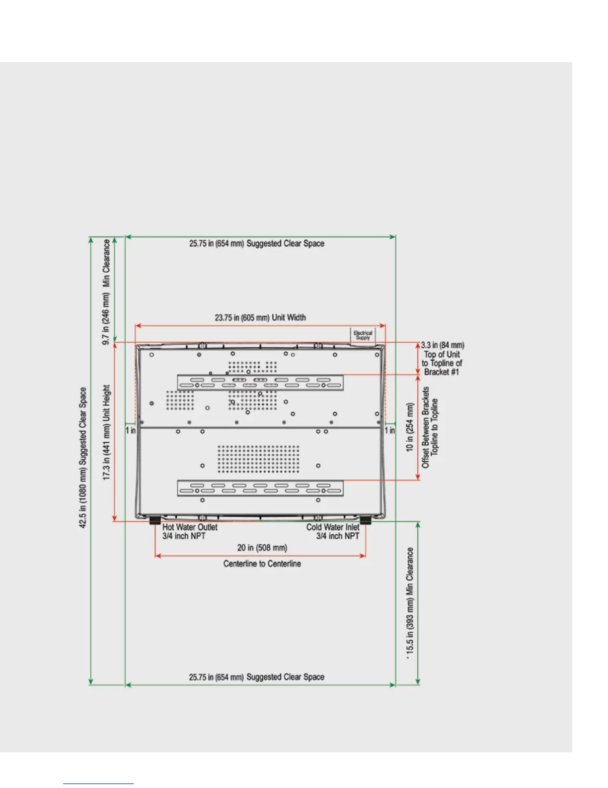 • Top: 10˝ (25.4 cm) [18˝ (45.7 cm) recommended]