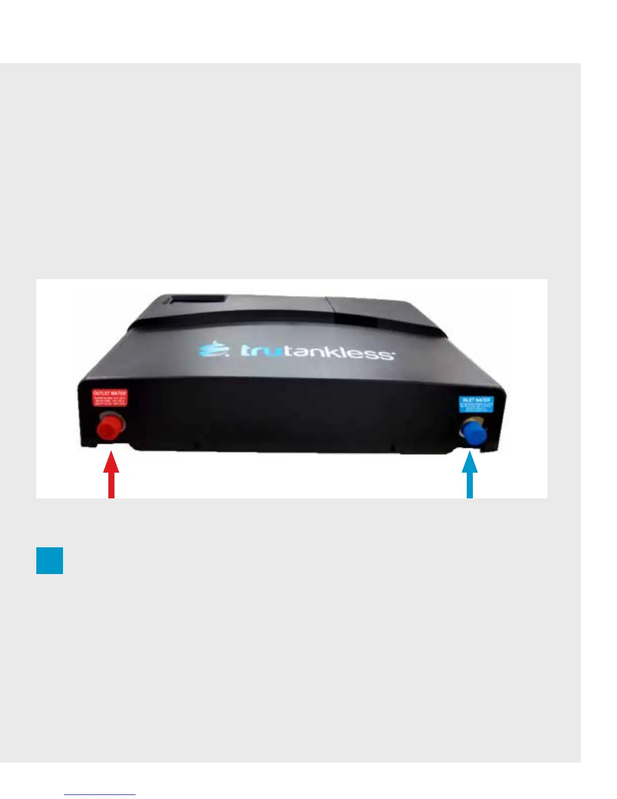 • 3/4˝ MNPT male (blue) cold water supply inlet (lemost when facing the unit)