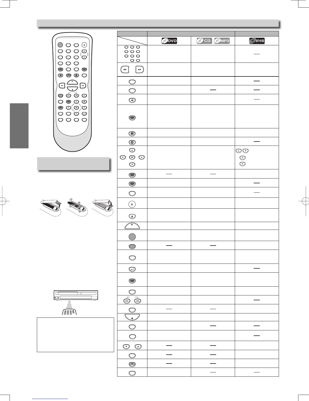 • To call up the DVD menu. • To call up the DVD menu. • To call up the VCR menu.