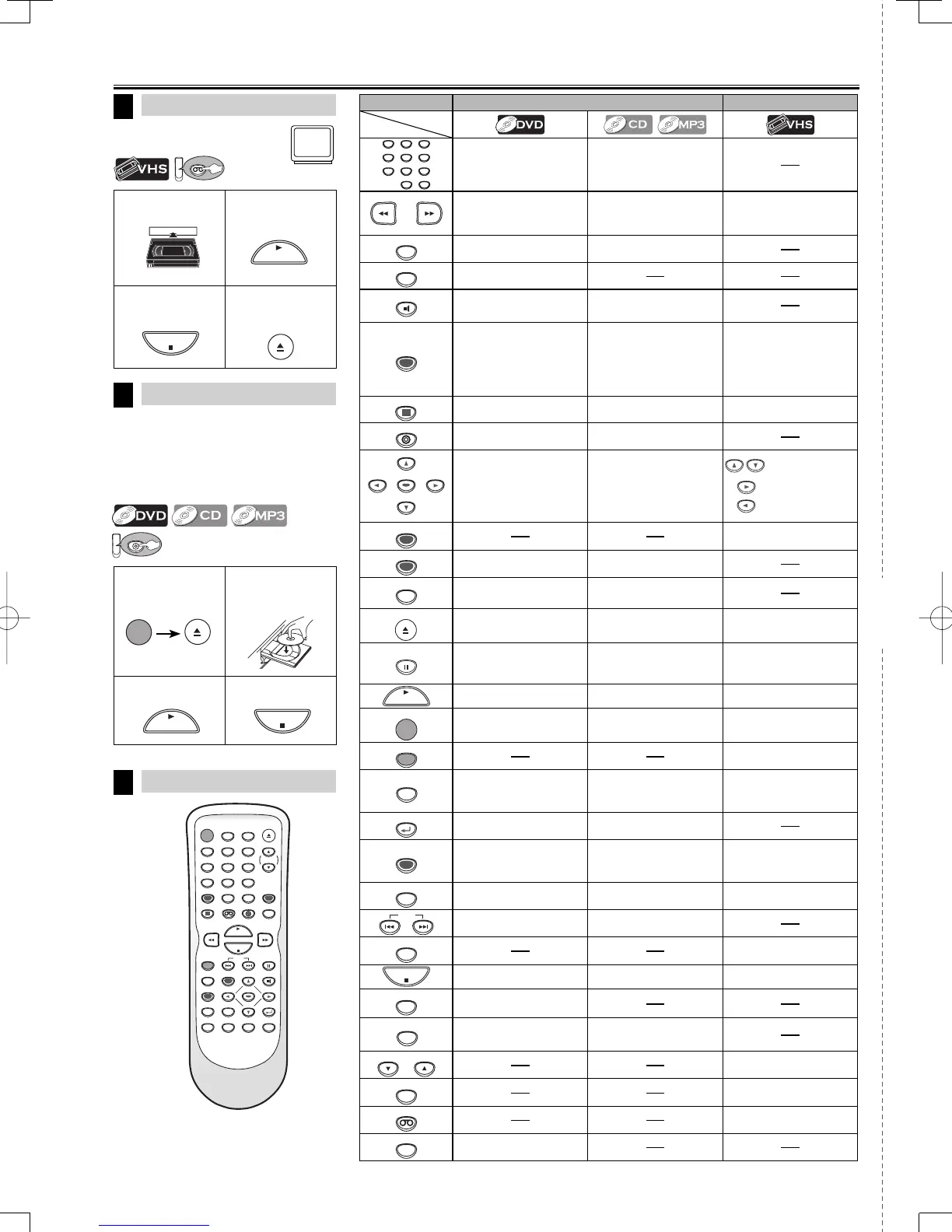 • To call up the DVD menu. • To call up the DVD menu. • To call up the VCR menu.