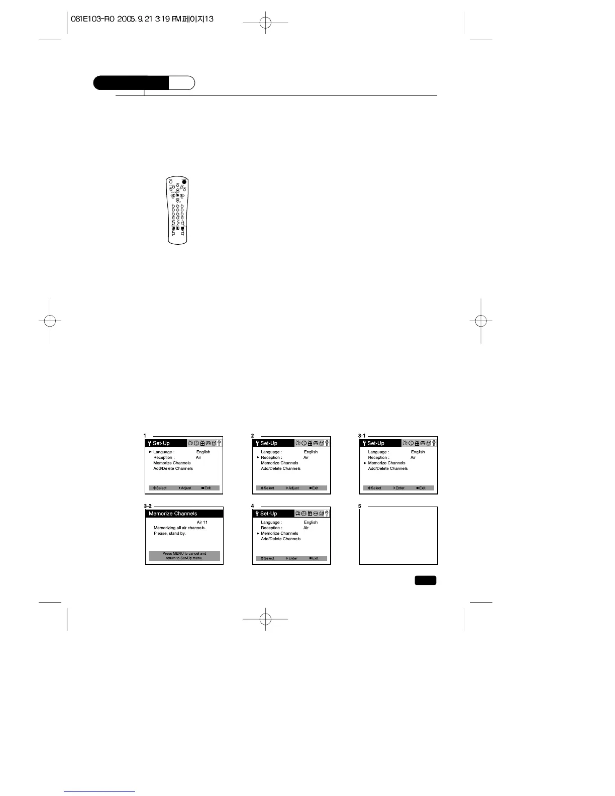 3.Use the ▲CH▼ buttons to select “Memorize Channels”, then use the