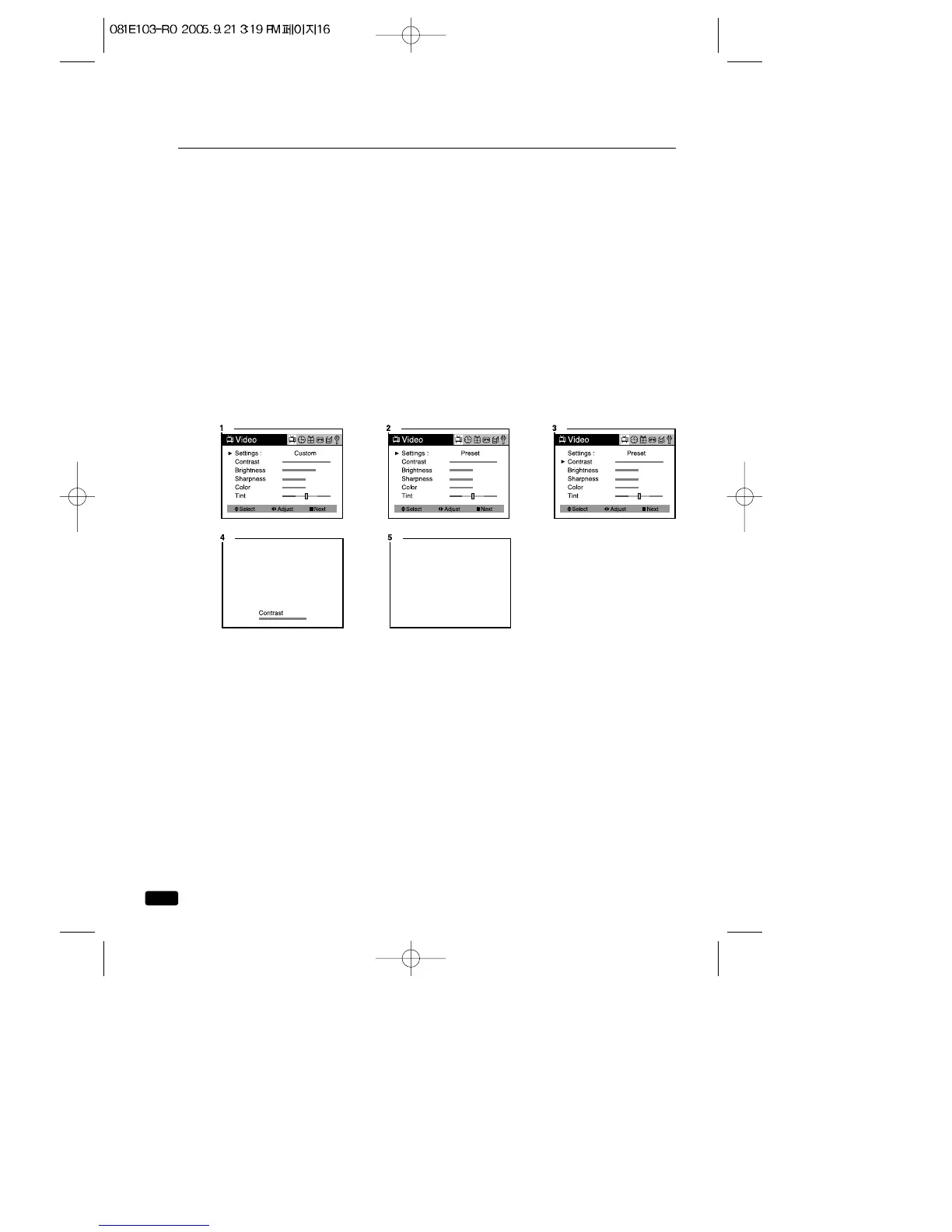 4.Use the ◀VOL▶ buttons to adjust the video setting to the level you