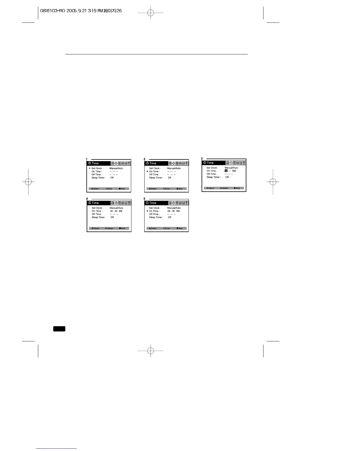 1.With the TV turned on, press the MENU button until “Time” menu is