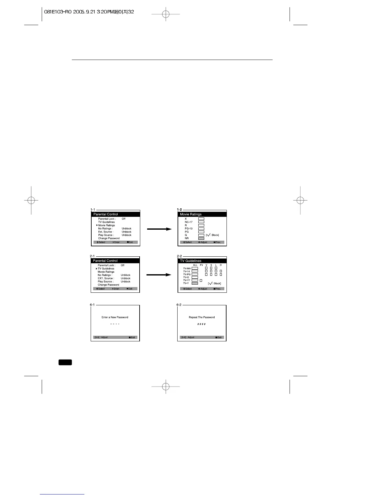 entering Parental Control item. Use the VOL▶ buttons to enter the