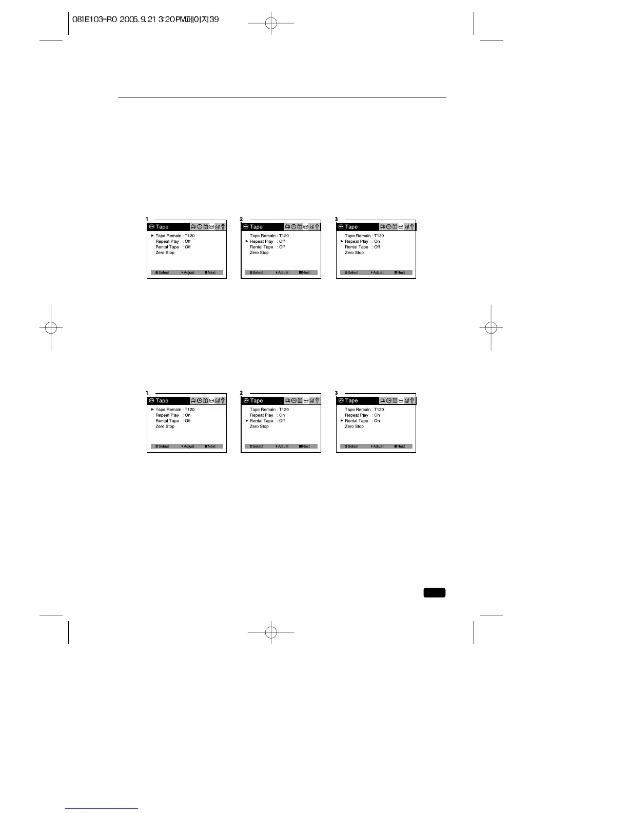 1.Press the MENU button until “Tape” menu will be displayed.