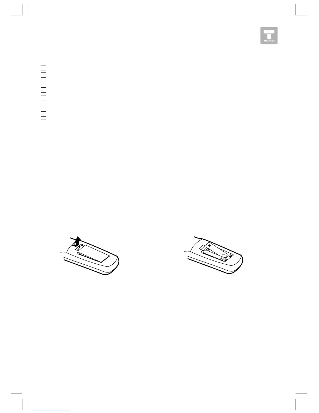 • If the remote control is not going to be used for a long time, remove the batteries to avoid