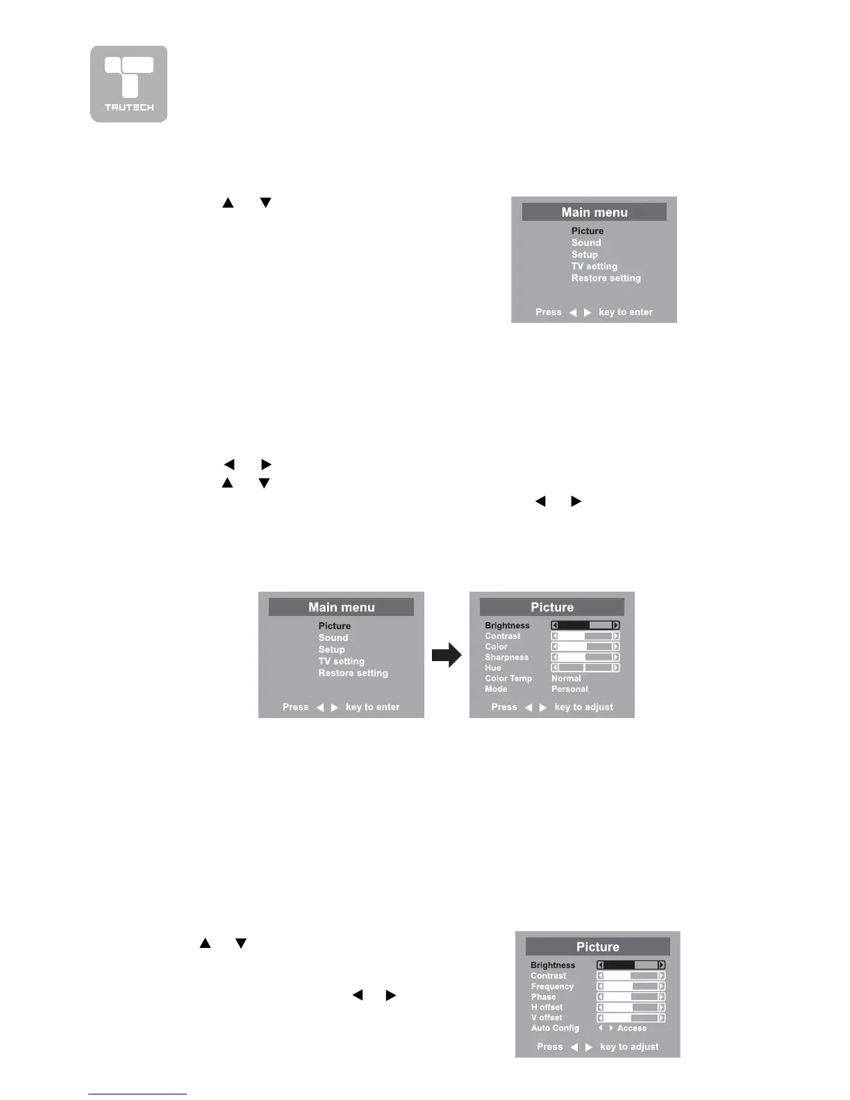 (Picture / Sound / Setup / TV Setting /