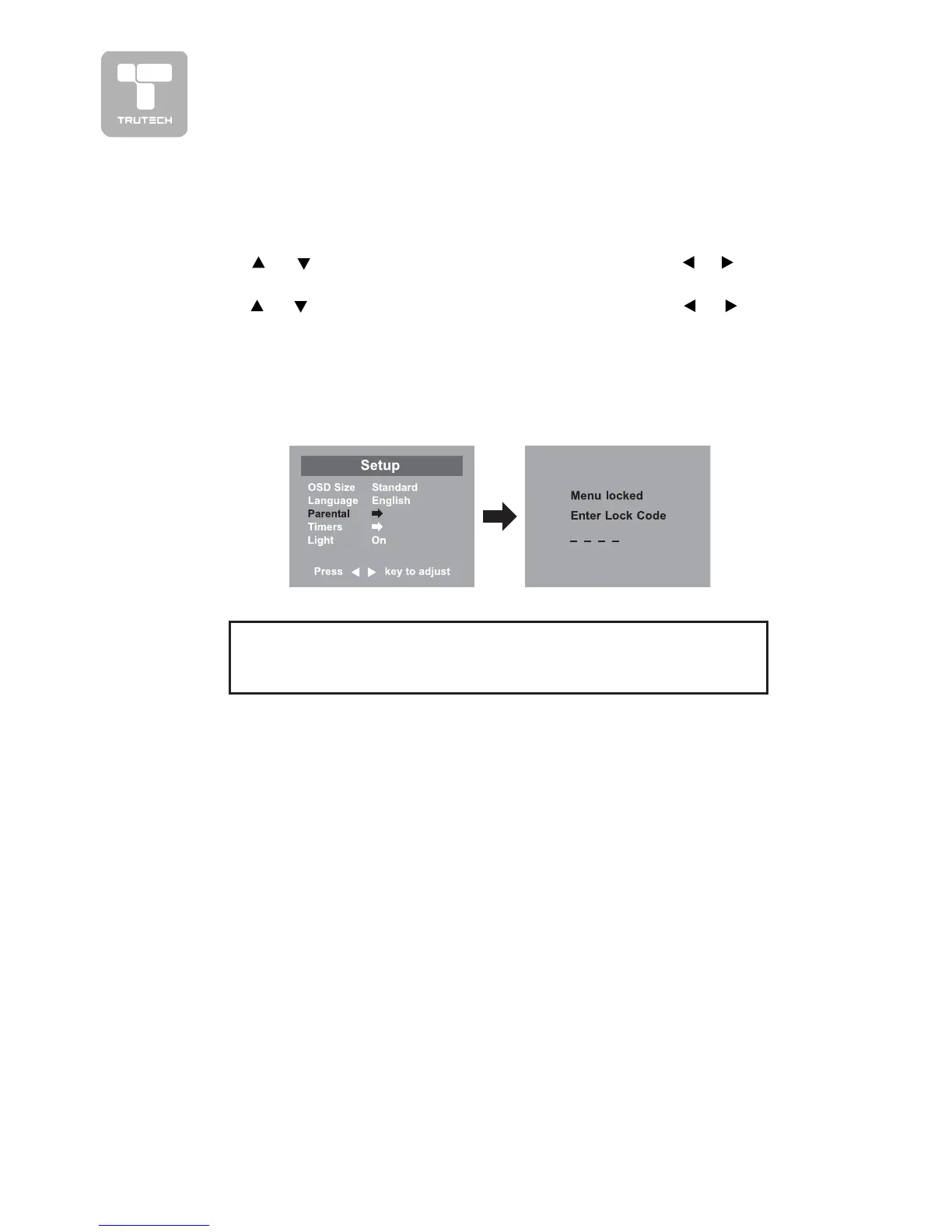 or button to select the Parental menu, then press or button to