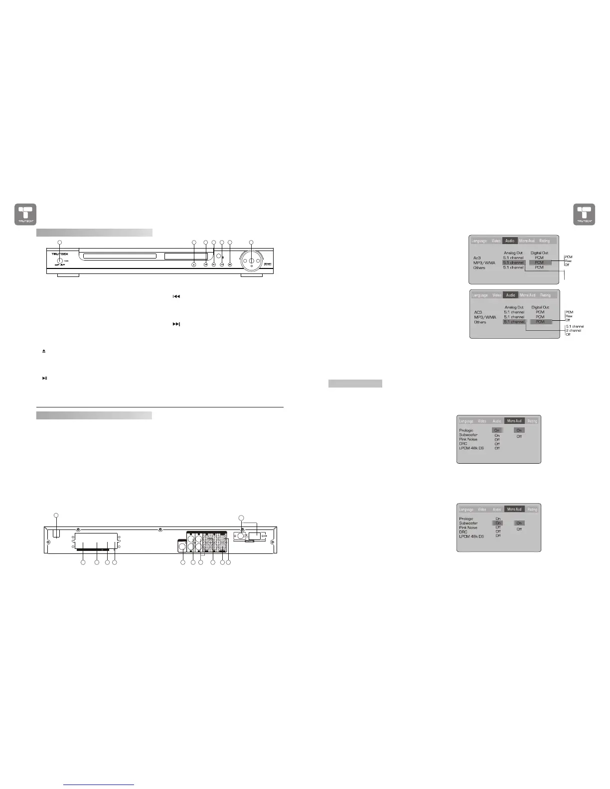 The DVD player has a built-in Dolby Prologic decoder to provide virtual surround sound for PCM