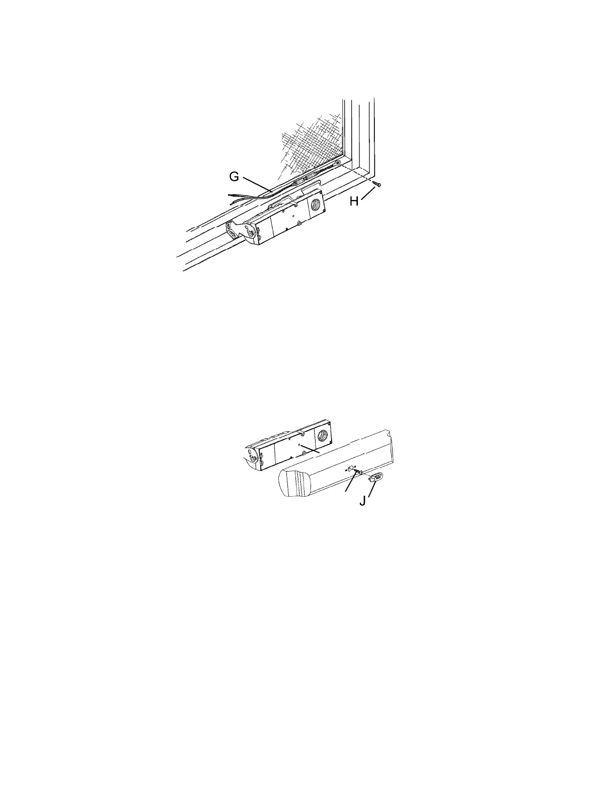 Install screen interlock (G) as shown using pan head screw (H)