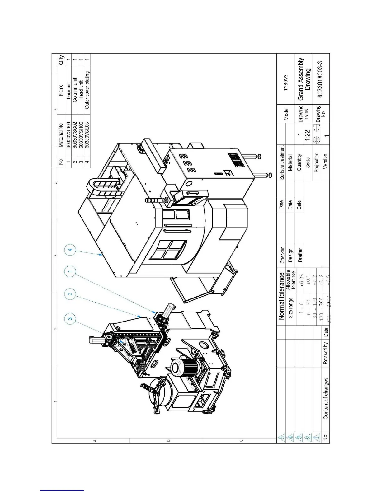 Tryax TY30-VS - Assembly Drawing & Machine list