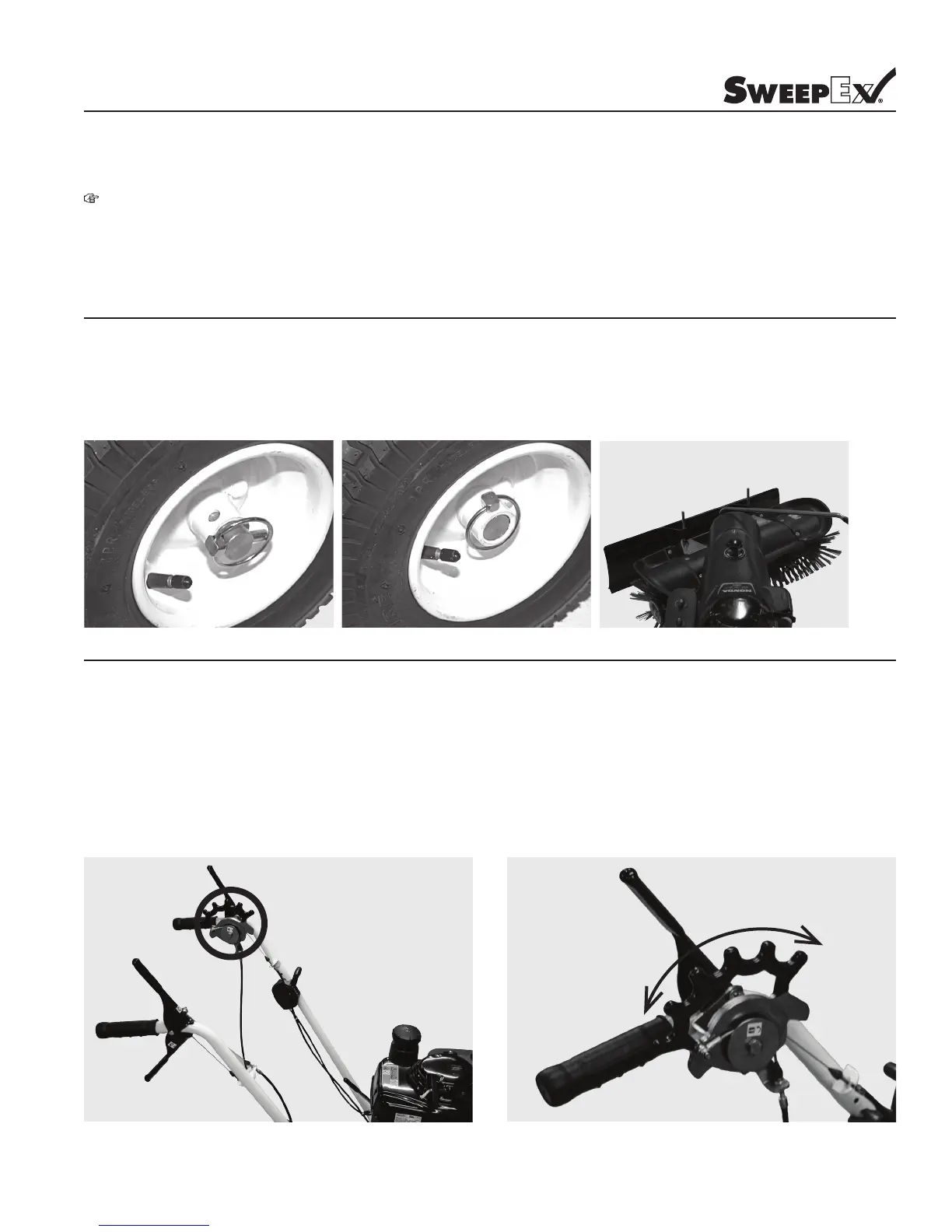 When using the plow or using the leaf collector, locking the wheel on the windrow-side will reduce the lateral force on the handlebars.