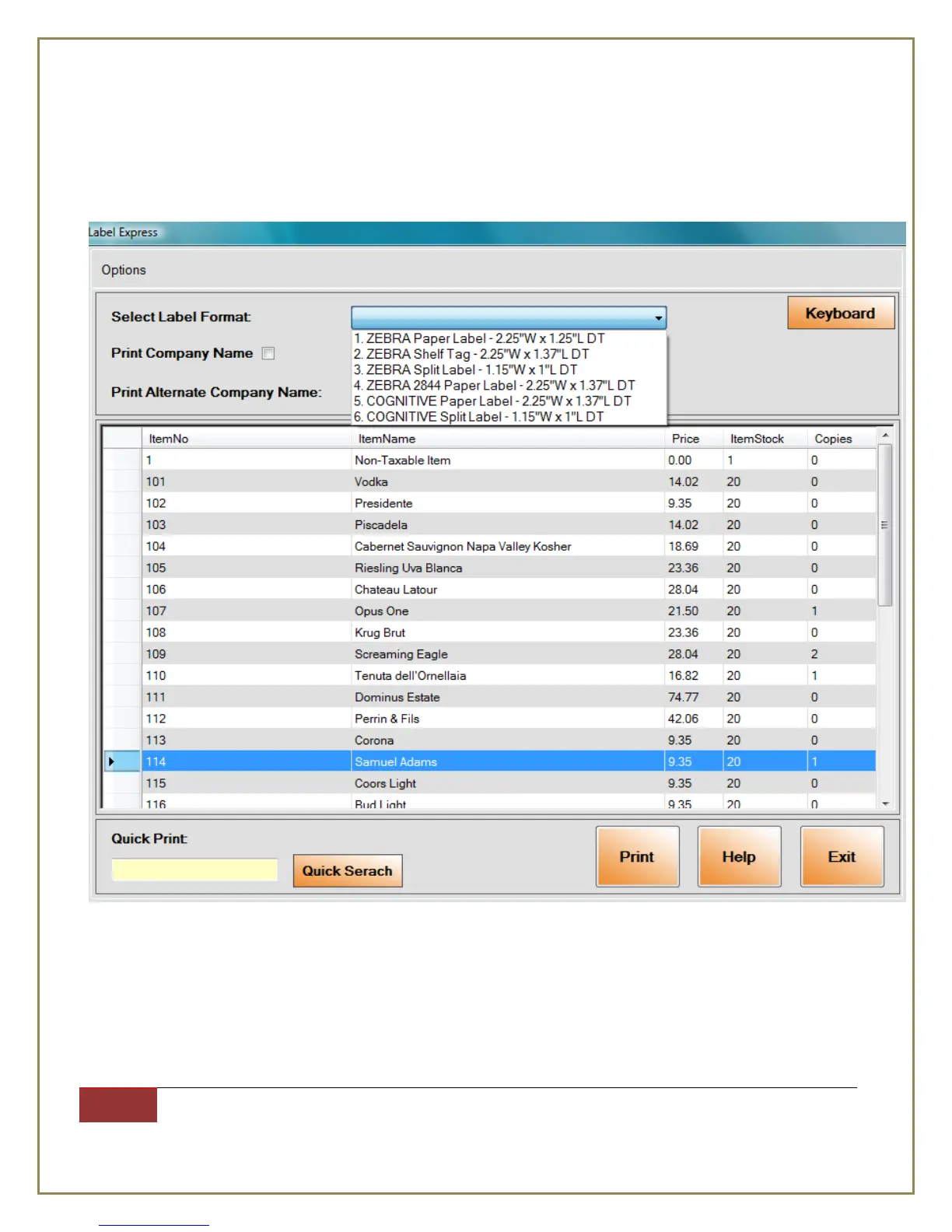 you want to print out. (Note to user: Only select the “ZEBRA.....” options)