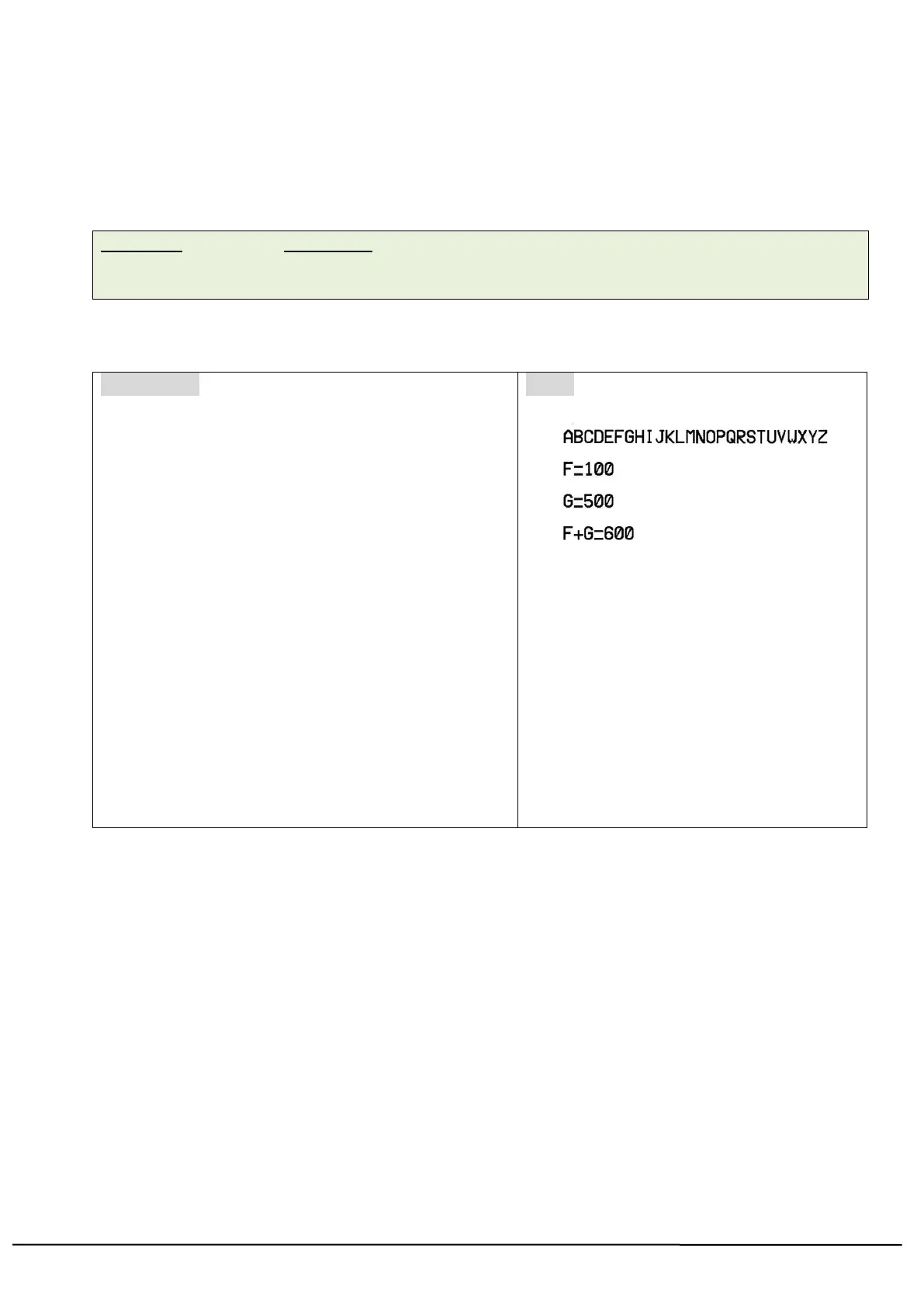 TEXT 10,160,"3",0,1,1,"F+G="+I$