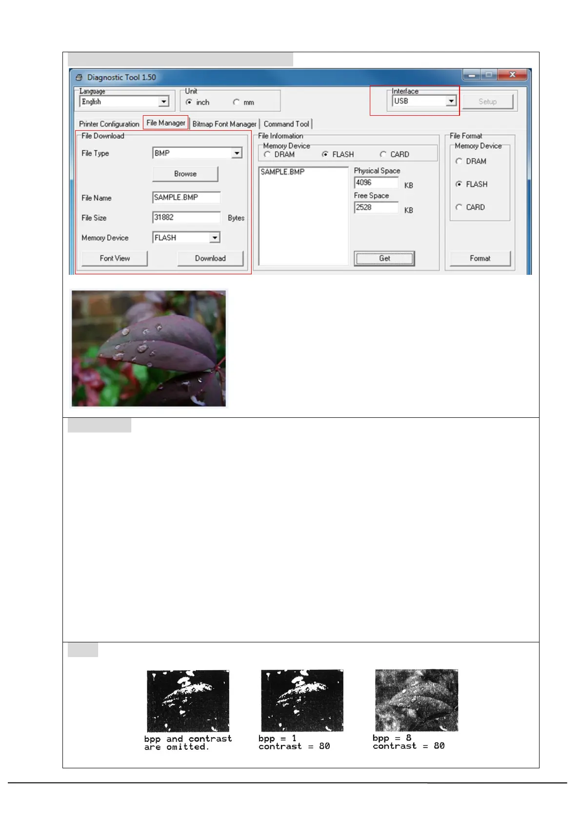 Downloading BMP file into printer by DiagTool