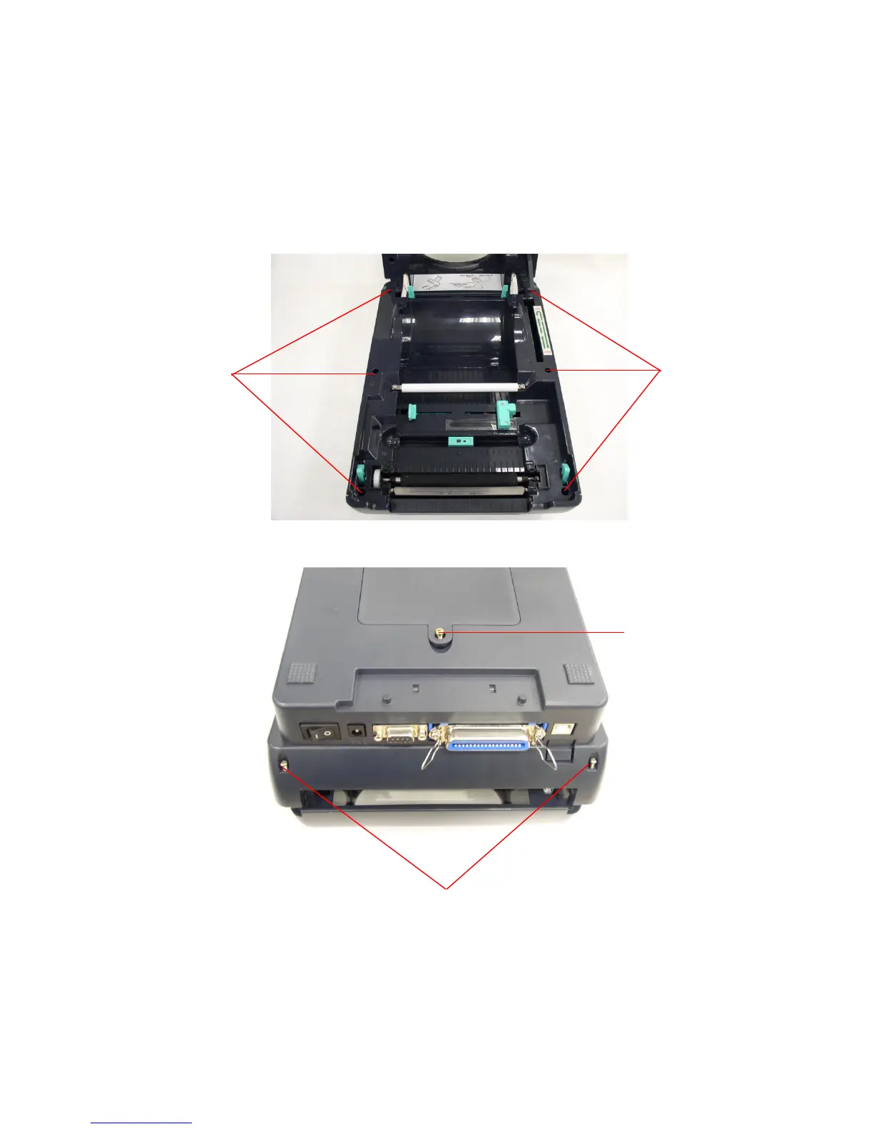 2. Remove the 6 screws of lower inner cover. Turn the printer upside down,