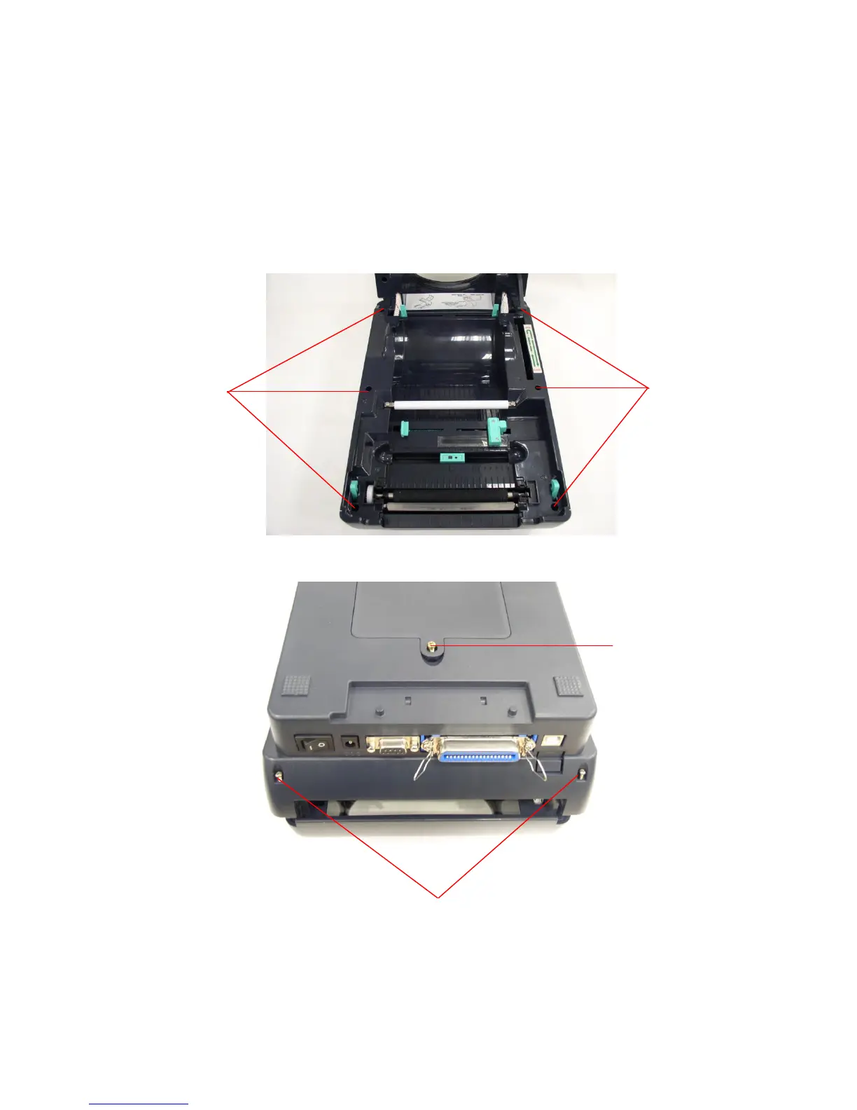 2. Remove the 6 screws of lower inner cover. Turn the printer upside down,