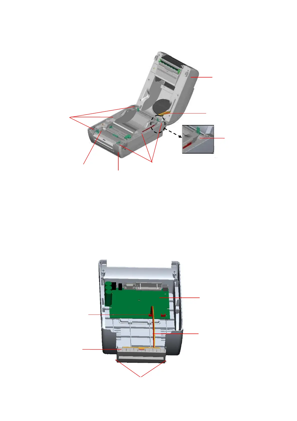4. Upside down the printer. Remove two screws at the hinge and remove one