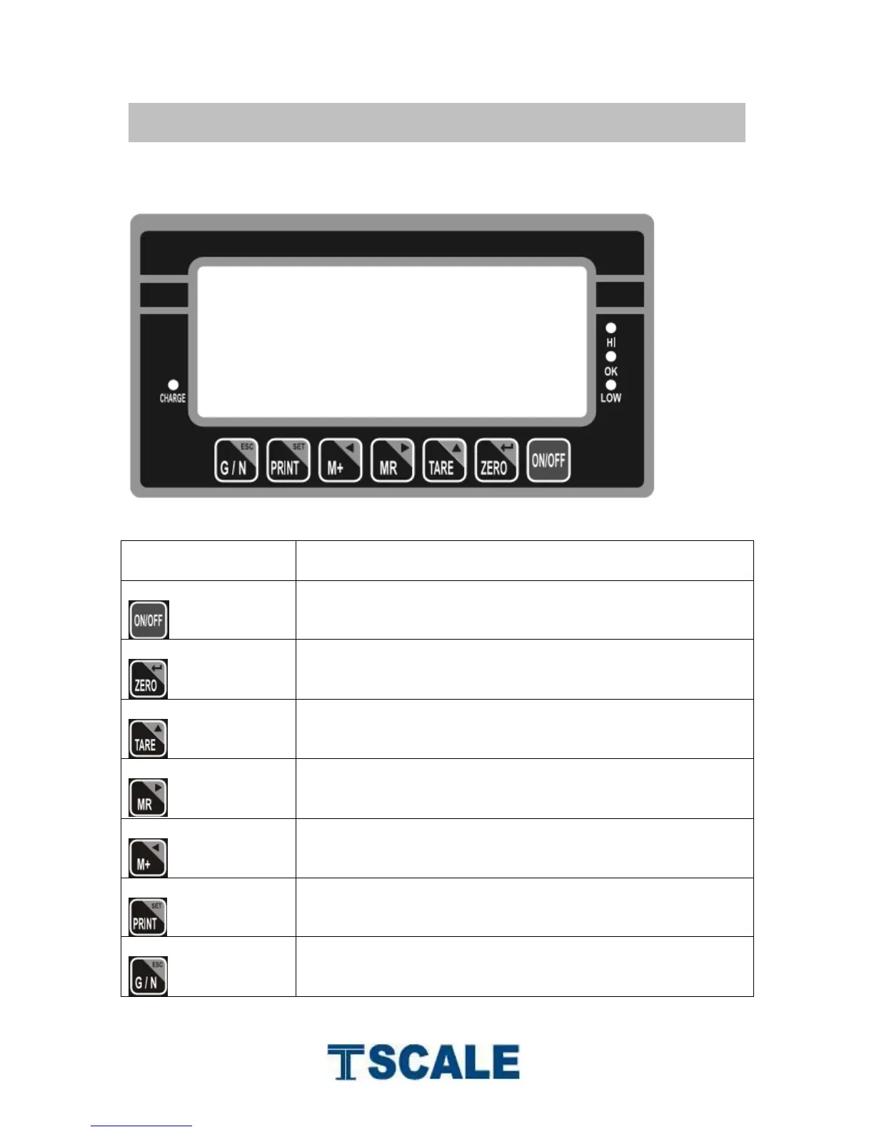 TScale CW Series - Keys Description; Key Board