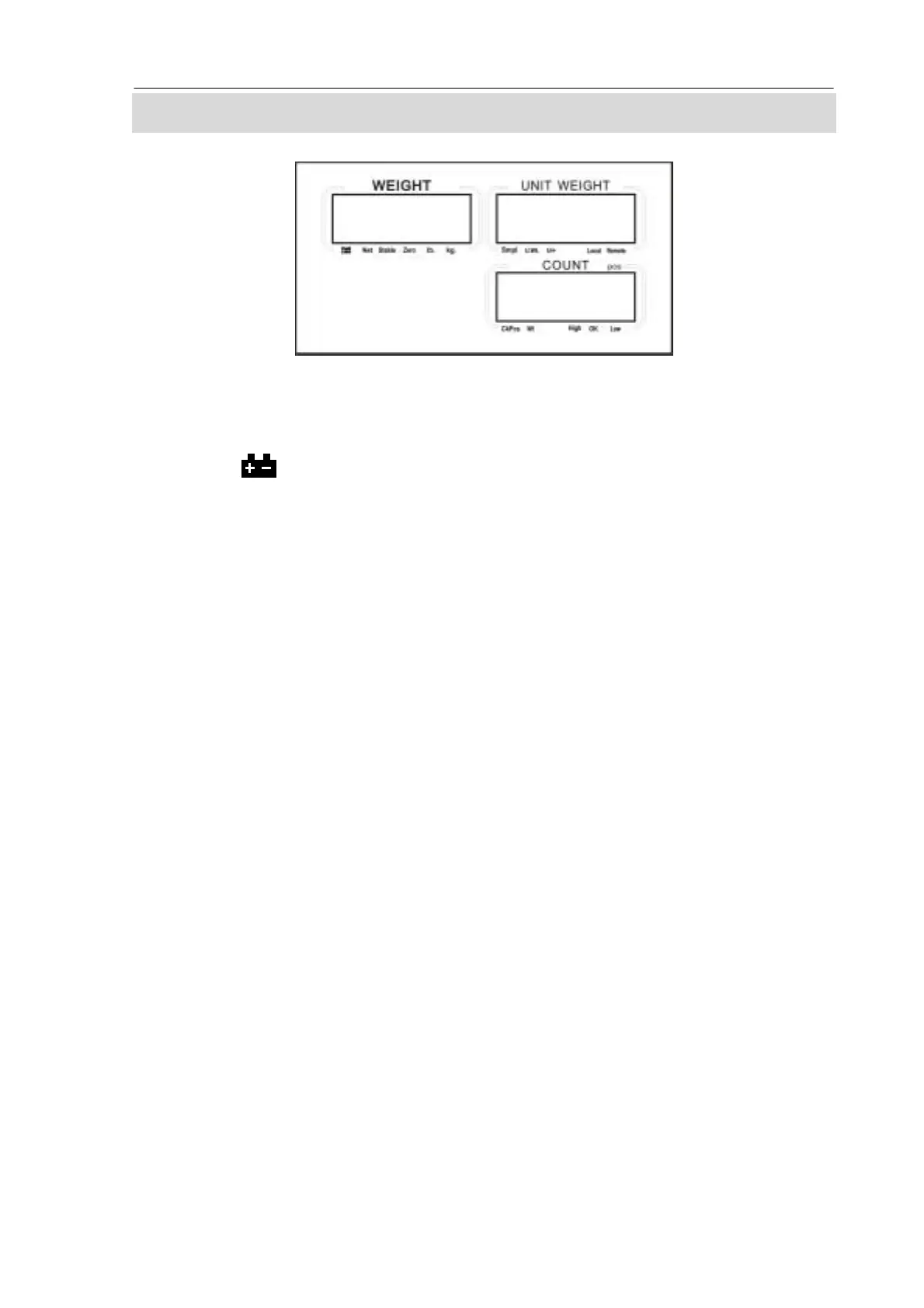 • Just under the “WEIGHT” display is an LED to indicate the status of the battery