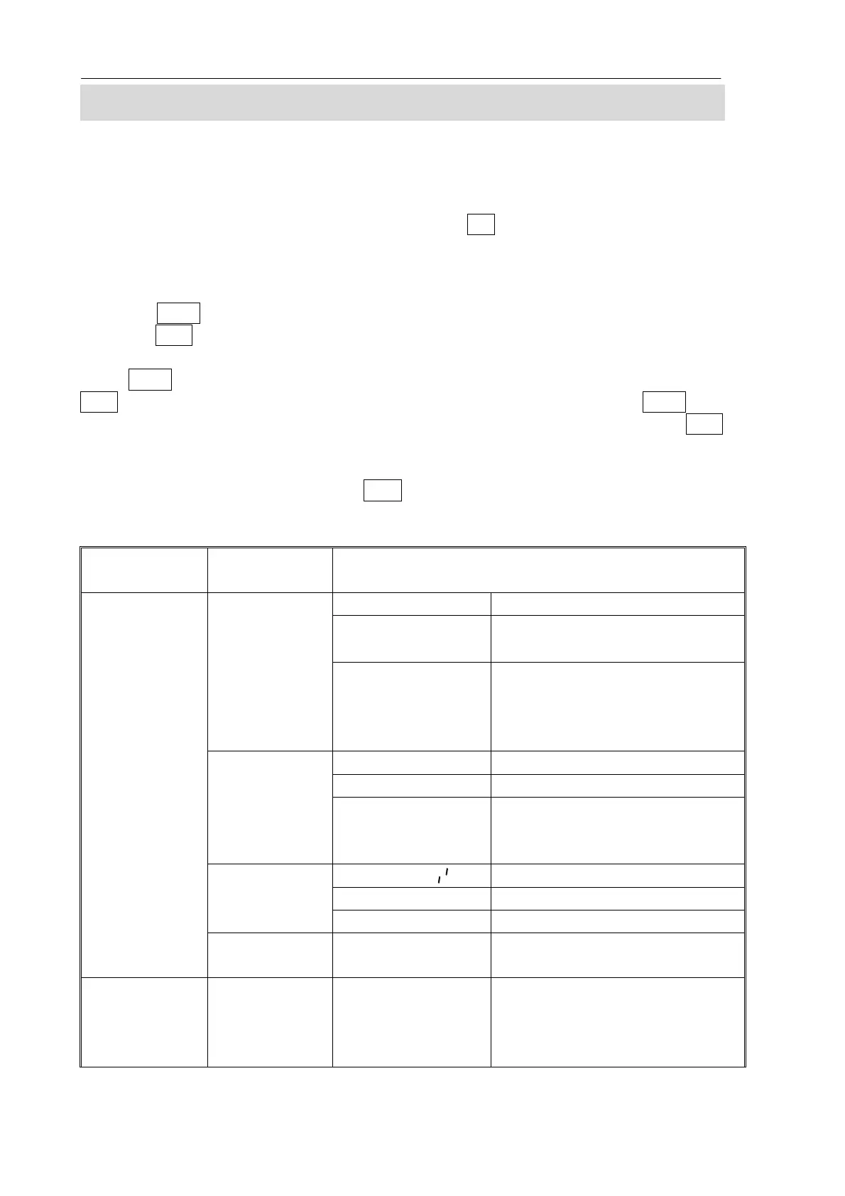 7.2 PARAMETER SETTING TABLE
